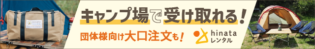 上記のレンタル品以外(テント・タープなど)はhinataレンタルに委託しております。