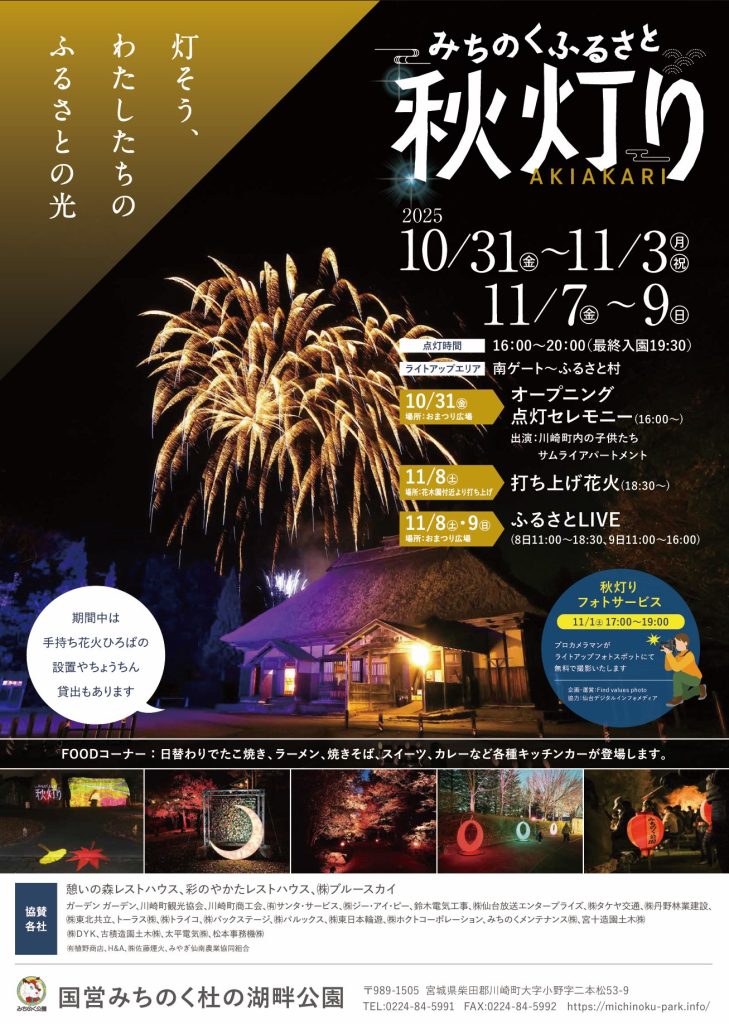 10/31(金)~11/3(月祝)・7(金)~9(日)の計7日間、南地区ふるさと村を中心に『みちのくふるさと秋灯り』を開催いたします。