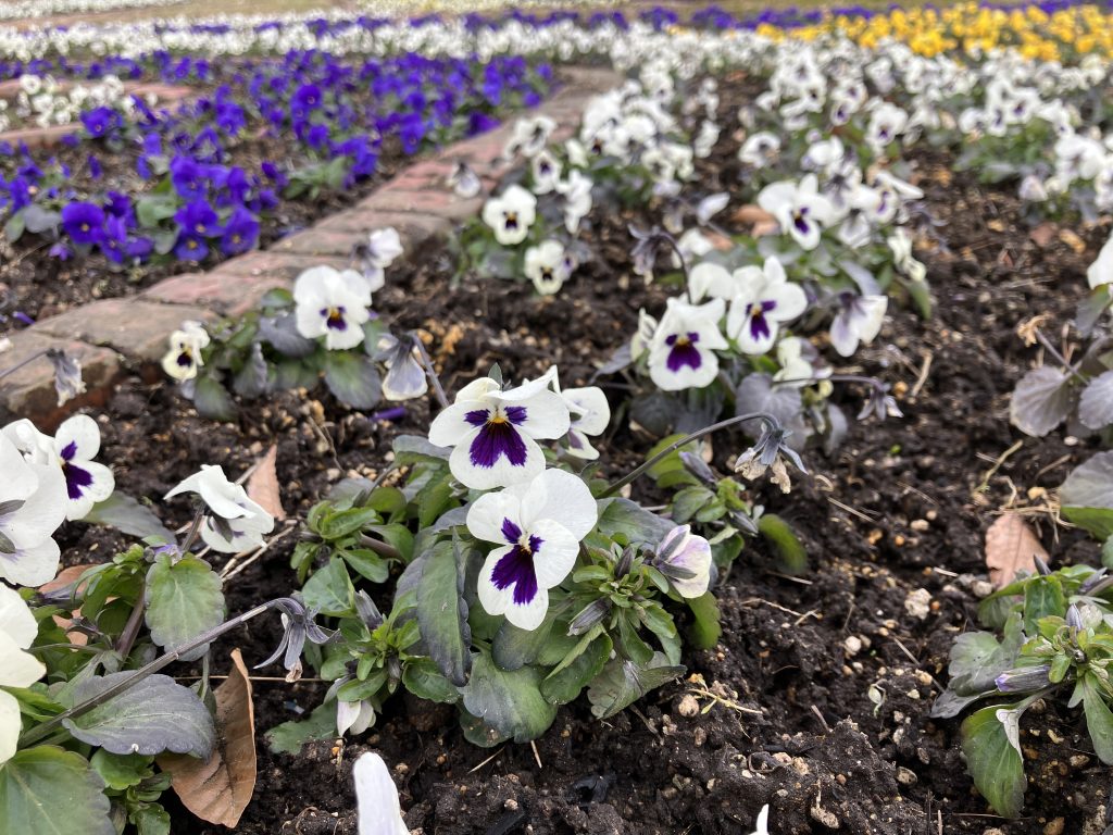 園内にお花が少ない時期ですが、パンジーとビオラが花壇を彩ってくれています。