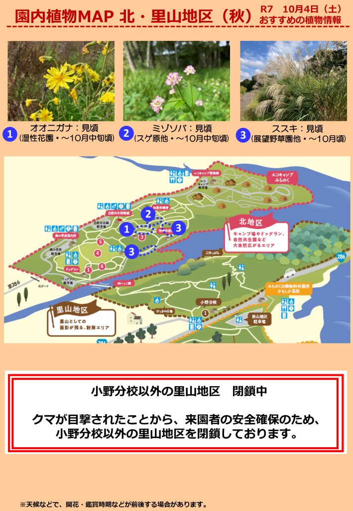 (園内植物MAP 南・北・里山地区)詳しくはこちらをご覧ください。