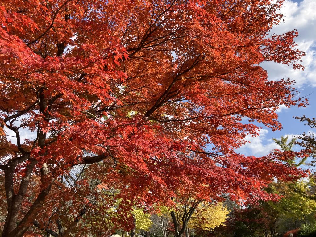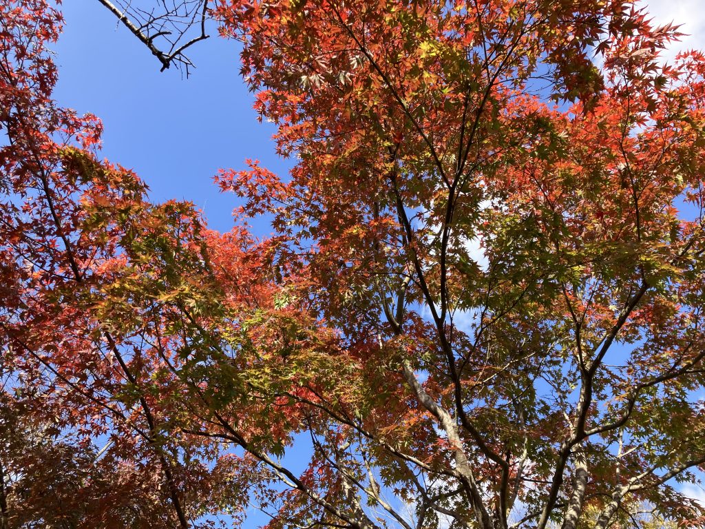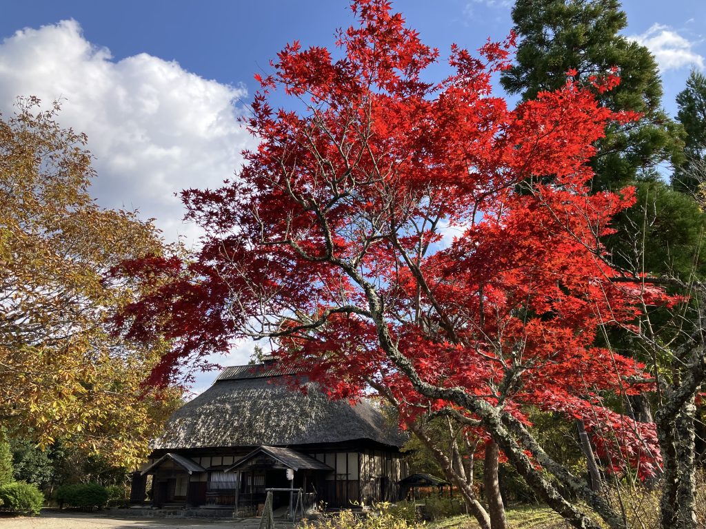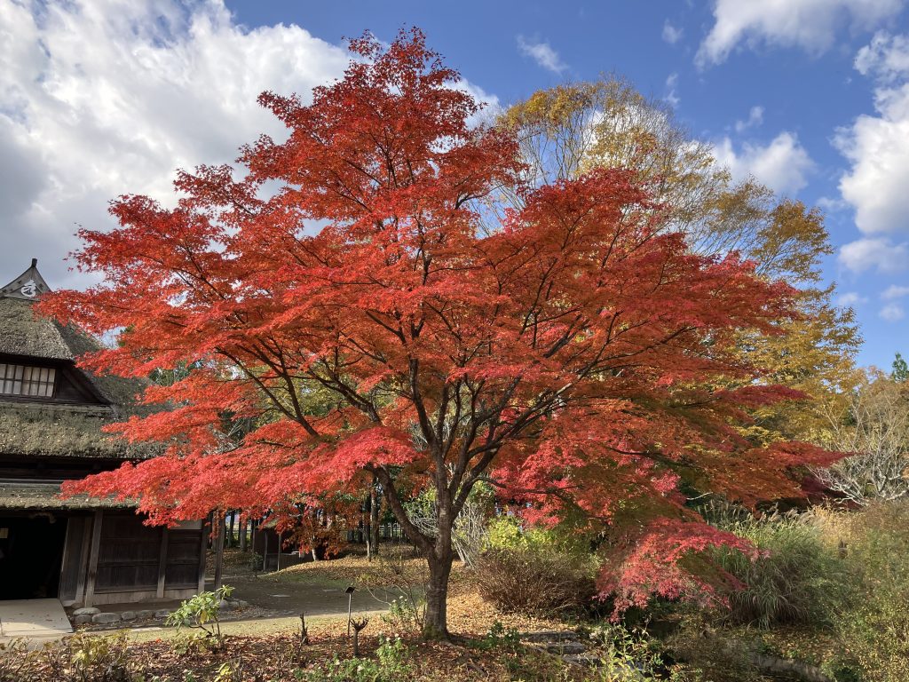 ふるさと村の各所にて、イロハモミジが紅葉しています。