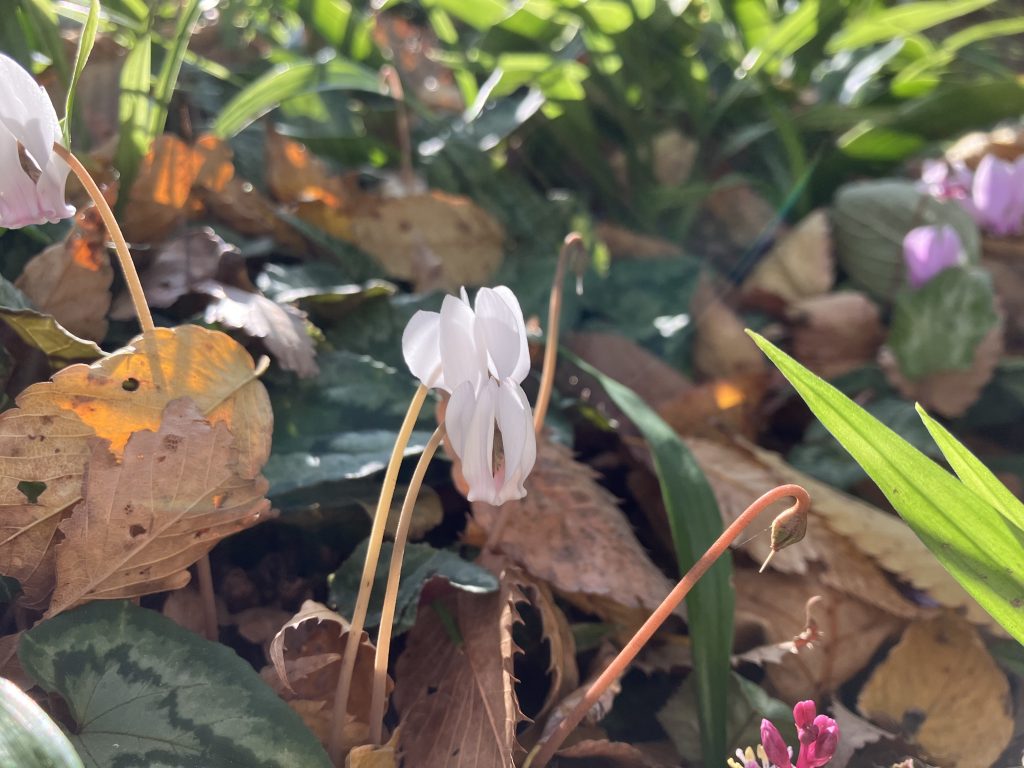 クリスマスローズの丘にて、秋咲きの原種シクラメン(シクラメン・ヘデリフォリウム)が見頃となっております。