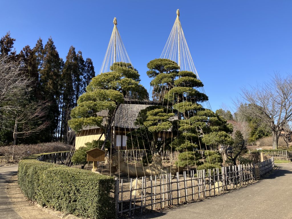 ふるさと村釜房の家前にて、雪吊りしている「湯田河のマツ」をご覧いただけます。