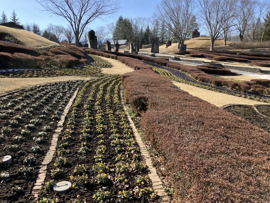 各花畑と花壇のお花は育成中です。春の開花を楽しみにお待ちください。