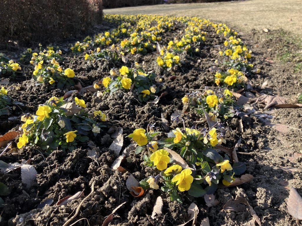 大花壇にて、パンジーとビオラがご覧いただけます。